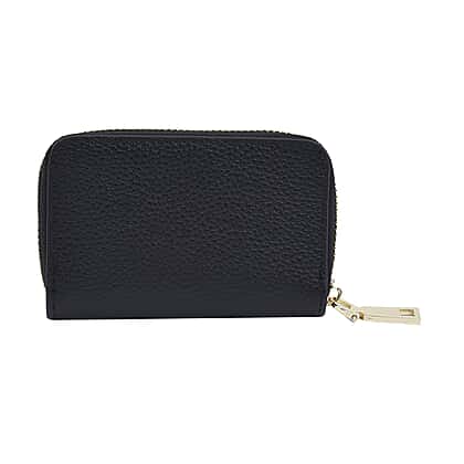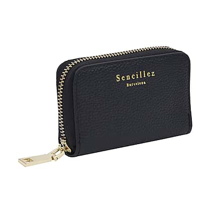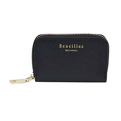 SENCILLEZ 100% Genuine Leather Wallet with Zipper Closure - Black