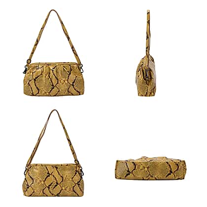 SENCILLEZ 100% Genuine Leather Snake Skin Pattern Clutch Bag with Detachable Shoulder Strap - Yellow