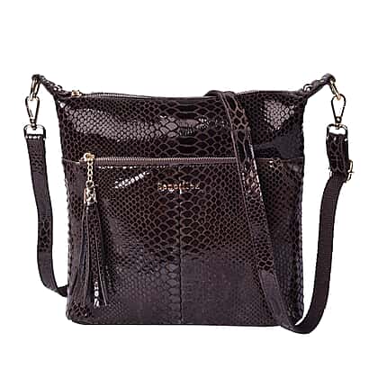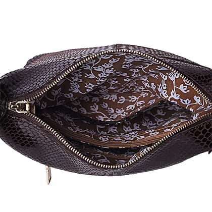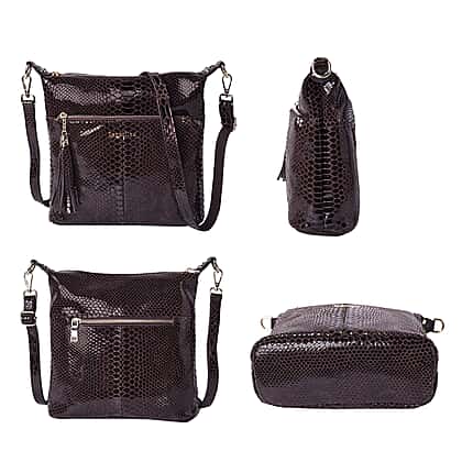 100% Genuine Leather Snake Skin Pattern Crossbody Bag in Black Colour