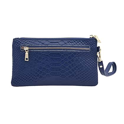 SENCILLEZ 100% Genuine Leather Snakeskin Pattern Clutch Bag with Zipper Closure (Size 19x11Cm) - Blue