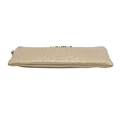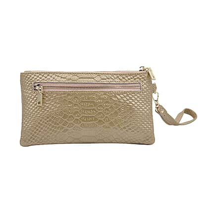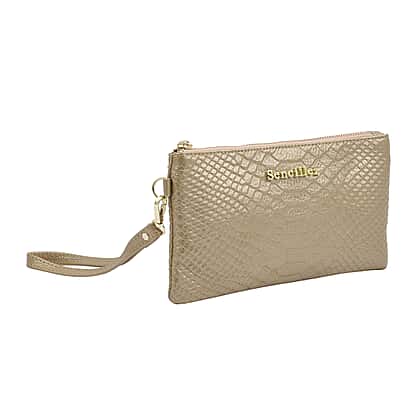 SENCILLEZ 100% Genuine Leather Snakeskin Pattern Clutch Bag with Zipper Closure (Size 19x11Cm) - Gold