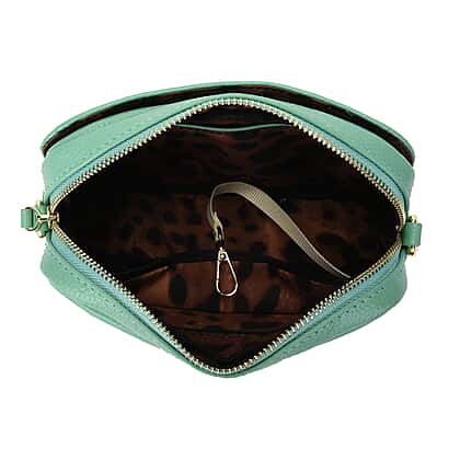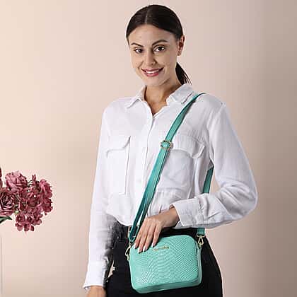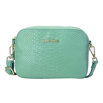 Sencillez Genuine Leather Snakeskin Pattern Crossbody Bag with Detachable Strap - Mint Green