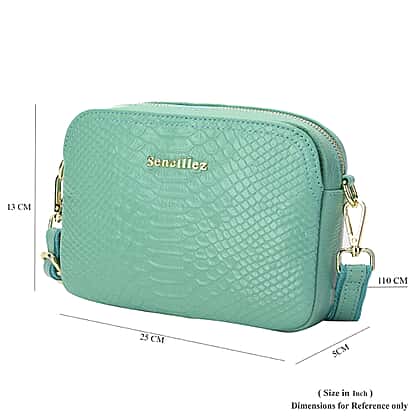 SENCILLEZ 100% Genuine Leather Snakeskin Pattern Crossbody Bag with Detachable Strap and Zipper Closure - Green
