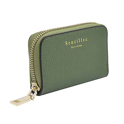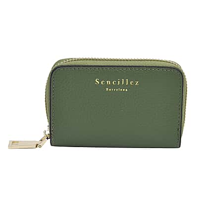 SENCILLEZ 100% Genuine Leather Wallet with Zipper Closure - Black