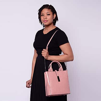 Sencillez Croc Embossed 100% Genuine Leather Convertible Bag (26x12x26 Cm) - Pink