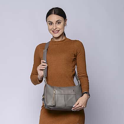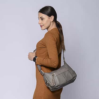 SENCILLEZ Genuine Leather Womens Crossbody Bag with Shoulder Strap - Grey