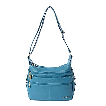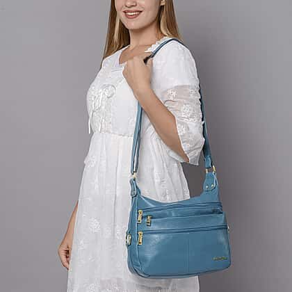 SENCILLEZ Teal 100% Genuine Leather Multi Pocket Crossbody Bag (29x10x21cm)