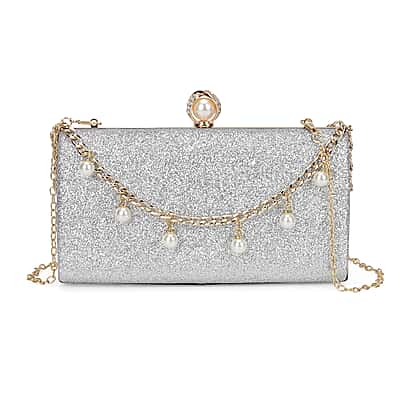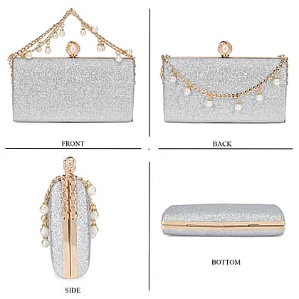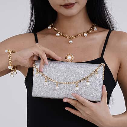 Sequin Clutch Bag with Necklace & Bracelet (Size 22x12x4 cm) - Silver