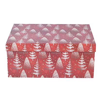 Set of 10 - Christmas Pine Tree Pattern Gift Boxes - Red