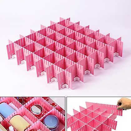 Set of 12 - DIY Plastic Grid Drawer Dividers (Size 36X7cm) - Pink
