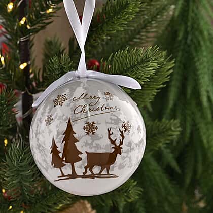Cherish the wintry wonder with our Set of 12 Tree and deer Pattern Christmas Decoration Balls. Meticulously designed, each bauble weaves a tale of frosty forests and graceful deer, bringing nature's elegance to your festive decor. Tied with a chic ribbon and presented in a sophisticated gift box, they're perfect for decking your halls or as a heartwarming present. Let the season's charm unfold with these enchanting ornaments.