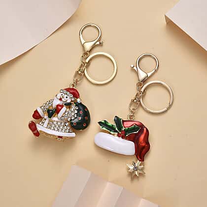 Set of 2 - Multi Color Santa Crystal Keychain