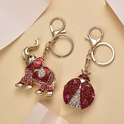 Set of 2 - Multi Color Lady Bug Crystal Keychain