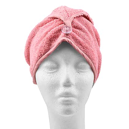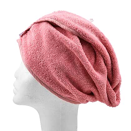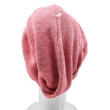 Set of 2 - 100% Cotton Absorbent Fast Dry Hair Wrap (Size 24x9 cm) - Pink & White