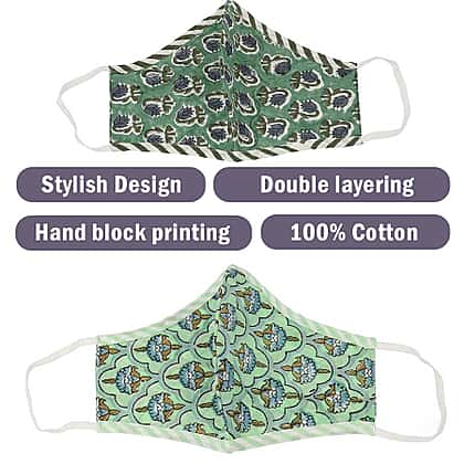 Set of 2 100% Cotton Hand Block Printed Reusable Double Layer Face Cover