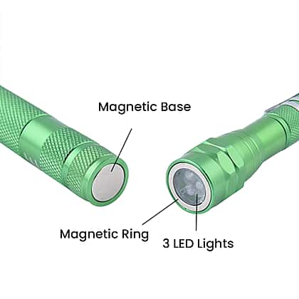 Set of 2 - 360 Degree Flexible Head 3 LED Magnetic Flashlight (Size 17x2.2 Cm) (4XLR44 Battery Included) - Green