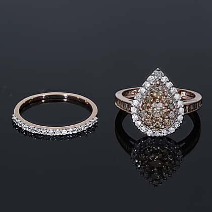 Set of 2 - 9K Rose Gold SGL Certified Champagne (1.00 Cts) and White Diamond (0.50 Cts) ( I3-G-H) Ring 1.50 Ct.