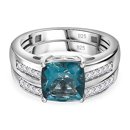Set of 2 - BelgianTeal Fluorite & Natural Zircon Ring in Rhodium Overlay Sterling Silver 3.10 Ct