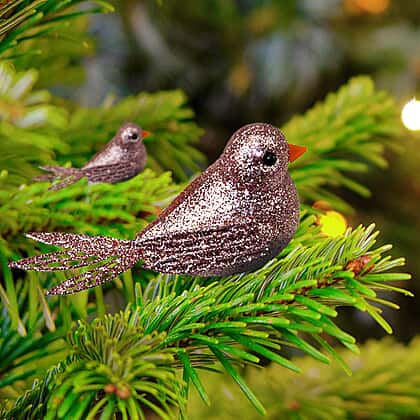 Set of 2 - Glitter Birds Clip Champ for Tree - Peach