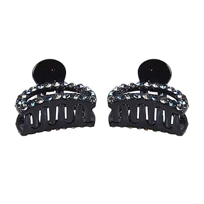 Set of 2 - Crystal Studded Small Hair Claw Clip - Grey and Blue Black