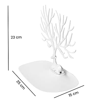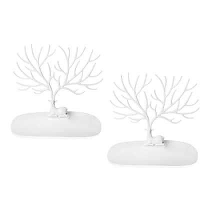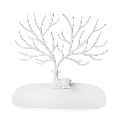 Set of 2 - Deer Tree Shaped Jewellery Display Organiser (Size 25x23x12 cm) - White