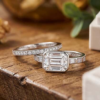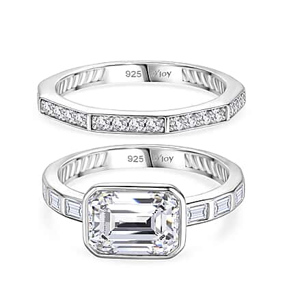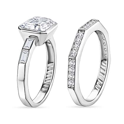 Set of 2 - D'Joy GRA Certified Moissanite D-VVS1 Ring in Rhodium Overlay Sterling Silver 3.20 Ct.