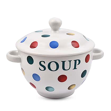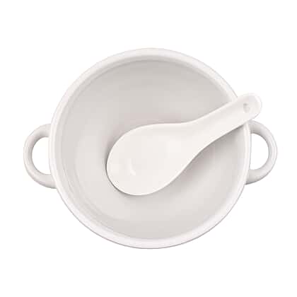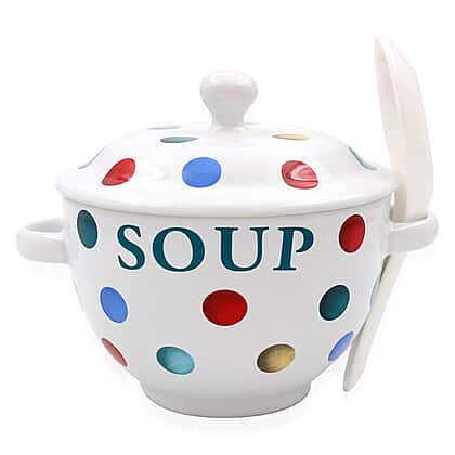 Set of 2 - Dots Pattern Soup Bowl with Ceramic Spoon (Size 15x11 cm) - White & Multi