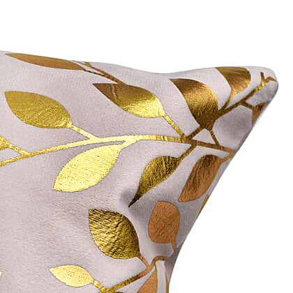 Set of 2 - Dutch Velvet Small Leaves Pattern Cushion Cover (Size 45 cm) - Pink and Gold