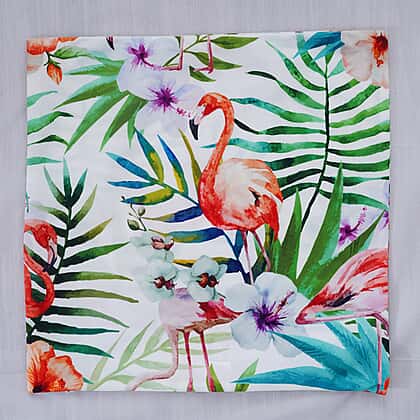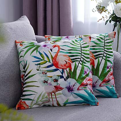 Set of 2 - Flamingo & Flower Pattern Cushion Cover with Zipper Closure (Size 43x43cm) - Green, White & Multi