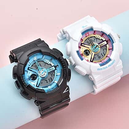 Set of 2 - GENOA Japanese Movement and Digital Water Resistant Watch - Black - White