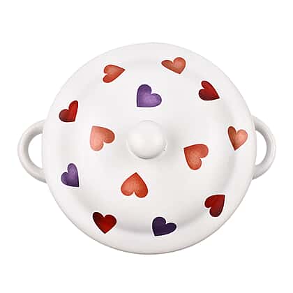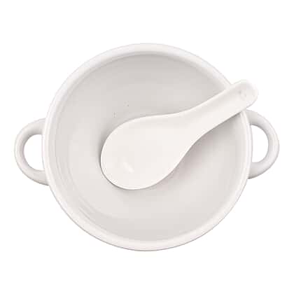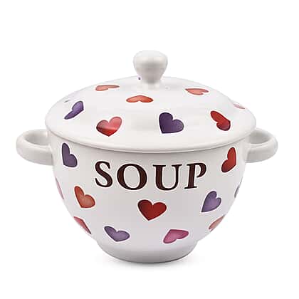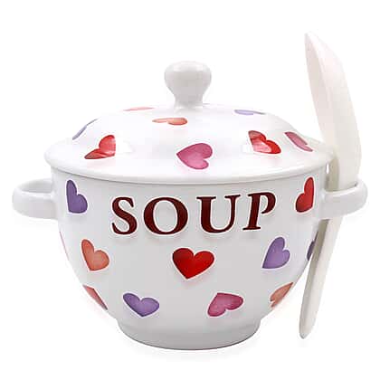 Set of 2 - Heart Pattern Soup Bowl with Ceramic Spoon (Size 15x11 cm) - Red & White