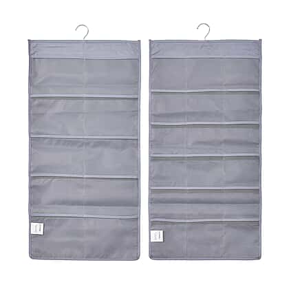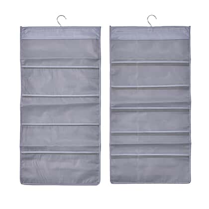 Set of 2 - Homesmart Double Sided Hanging Storage Organizer with 15 & 30 Compartments (Size 80x40x15 cm) - Grey