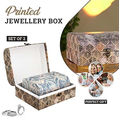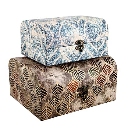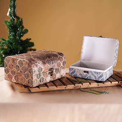 Set of 2 - Leaf & Textile Pattern Jewellery Box (Size 26x20x13 Cm & 20x15x11 Cm) - Brown & Blue