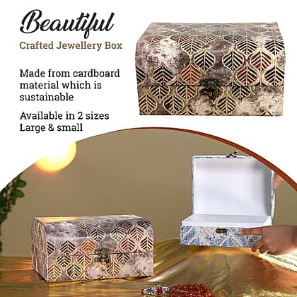 The ample storage of these jewellery boxes creates a solid addition to your storage space. These big-sized jewellery boxes are ideal for keeping rings, chains, pendants, and necklaces or even can accommodate cosmetics and other keep-sakes. Crafted using sustainable cardboard, they are eco-friendly and lightweight to be carried easily. This set includes two boxes of different sizes which can be used with various items. They come with a leaf pattern and charming colours.