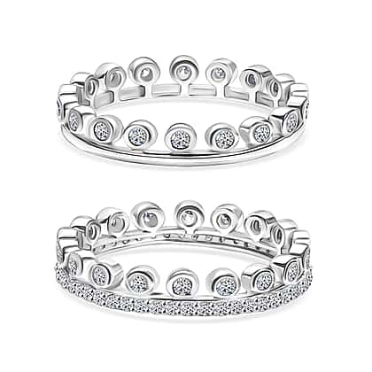 Set of 2 LUXURIANT 1 Ct. Lab Grown Diamond (SI-GH) Stackable Ring in Rhodium Overlay Sterling Silver