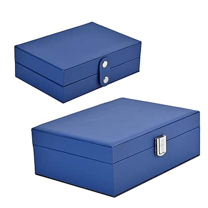 Set of 2 - Multi Purpose Two Tier Jewellery Box with Metal Lock (Size 23x17x8cm, 16x10x5cm) - Blue