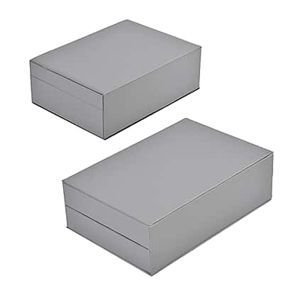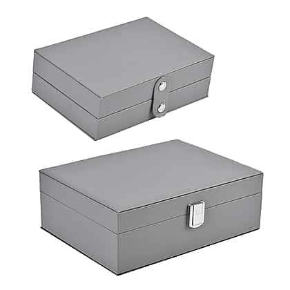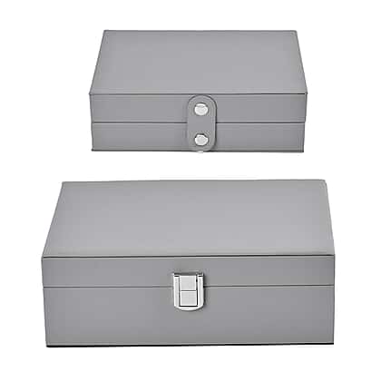 Set of 2 - Multi Purpose Two Tier Jewellery Box with Metal Lock (Size 23x17x8cm, 16x10x5cm) - Grey