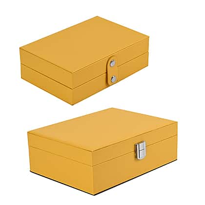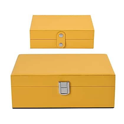 Set of 2 - Multi Purpose Two Tier Jewellery Box with Metal Lock (Size 23x17x8cm, 16x10x5cm) - Yellow