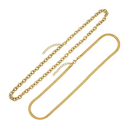 Set of 2 - Snake & Rope Stainless Steel Necklace (22-2) in Yellow Gold Tone