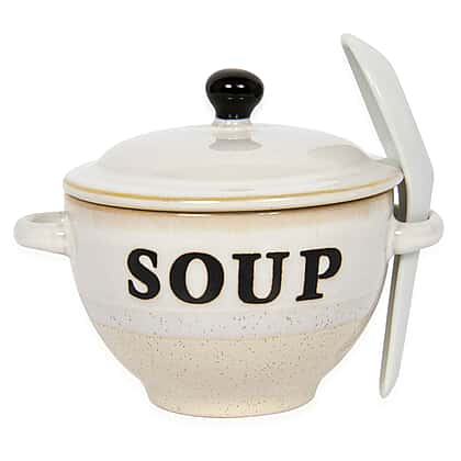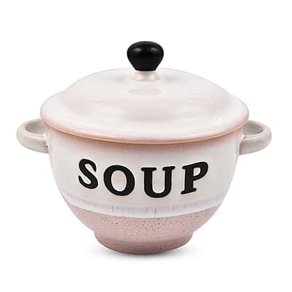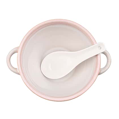 Set of 2 - Soup Bowl with Ceramic Spoon (Size 15x11 cm) - Pink