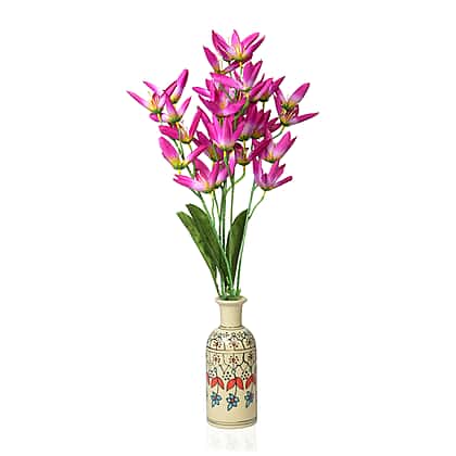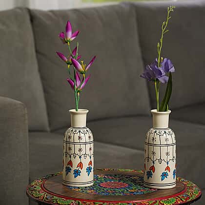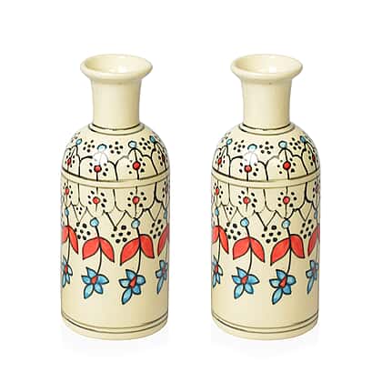 Create a décor that everyone will covet by keeping your favourite plants in this floral printed plant vase in soothing colours. This set includes two beautifully painted flower vases, enhancing your living and workspace. The ceramic work of these vases creates a solid base for your plants. Handmade by rural artists from India, these vases offer a traditional look and are ideal for fresh bouquets and faux flowers. Hand-painted yellow hibiscus flowers with acrylic colours symbolise personal glory.