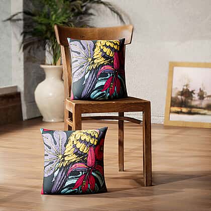 Set of 2 - Tropical Plant and Bird Pattern Cushion