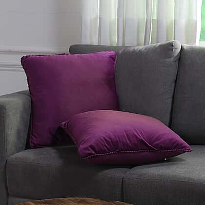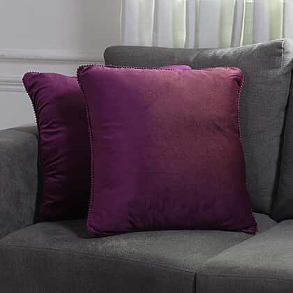 Set of 2- Solid Velvet Cushion Cover (Size 45x45 Cm) - Purple