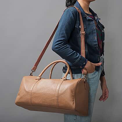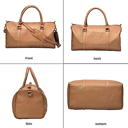 Set of 2 100% Leather Croco Embossed Luggage Duffle Bag with Crossbody Bag - Tan