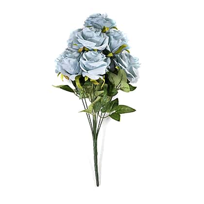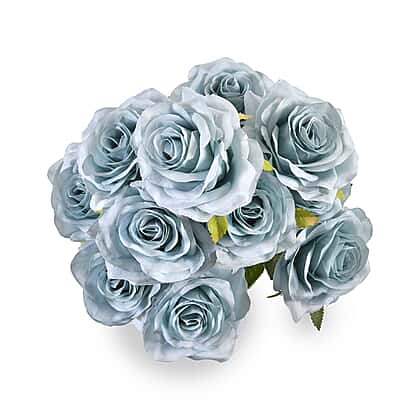 Set of 2 Artificial Rose Flower with 11 Heads, Green Stem - Leaves - Blue - Beige