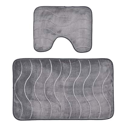 Set of 2 Extra Strong Anti-Slip Bathmat and Toilet Rug - Grey
