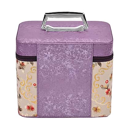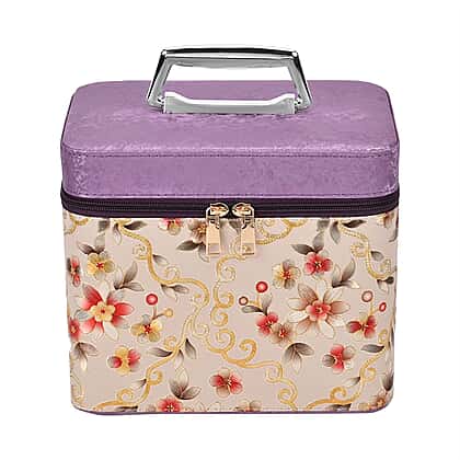Set of 2 Floral Pattern Makeup Boxes (Size Large - Small) - Purple - Cream