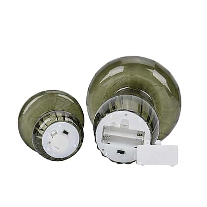Transform your living space with the Modern Minimalist Mushroom Glass Light Table Lamp Set. This stunning pair of glass lamps creates a cosy, warm ambience perfect for any room in your home. LED light beads resembling fireflies bring a subtle glow, ideal for evening relaxation or enhancing your décor. The smaller lamp is powered by included batteries, while the larger one offers convenient AAA battery operation. These lamps blend practicality with elegance, making them an excellent addition to your household lighting.