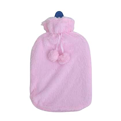Set of 2 Hot Water Bottles with Faux Fur Cover - Light Pink and Cabin Brown