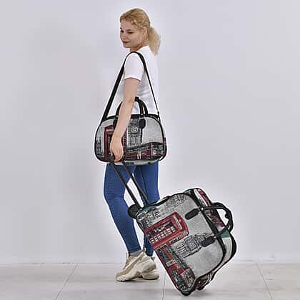 Set of 2 Large Wheeled Rolling Travel Duffle Bag with Handle Drop - Green with Big Ben